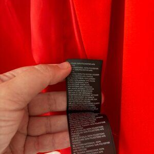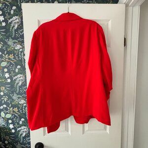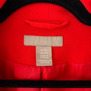 Cherry red three quarter sleeve open front blazer from H&M. This is part of a suit set (check out my listing for the blazer). Fully lined with no stretch, but fits generously and is designed to be worn open. It does have pockets, but I never cut them open because I preferred to keep the garment more structured. There is light padding in the shoulders, but it does not look like you're out of the 80's. There is a tiny black mark on the front lapel, which I suspect will come out when I wash before shipping but picture included in case I cannot fully remove. Great for the holidays in the office or any time of year.