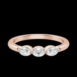 Three oval cut lab grown diamonds in a shared prong setting. This classic design bares a simple and elegant look.