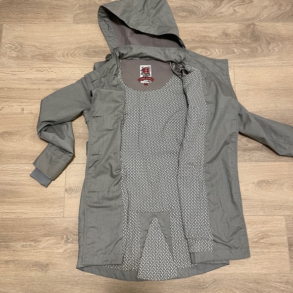 Like new. Women’s Three Stone fall or spring windbreaker coat. Size small. Light grey pattern.