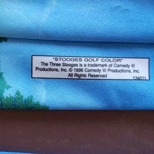 1996 Three Stooges Golf Color Polyester necktie by Ralph Marlin - measurement at widest part is 3 3/4", length is 56 1/2".