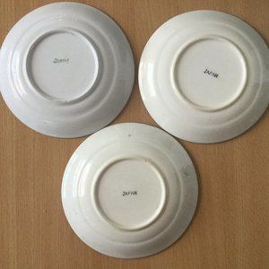 Set of three Vintage Porcelain Blue & White Blue Willow Saucer Plates marked Japan.