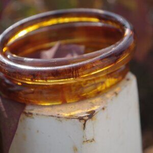 Three Vintage Lucite Translucent Rootbeer Bangles