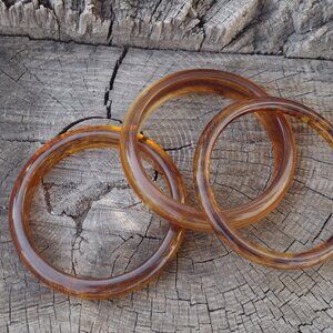 Three vintage Lucite translucent rootbeer bangles .In great condition .,great vintage color ,the size is 7cm round.