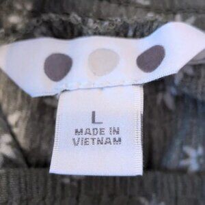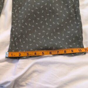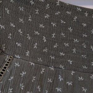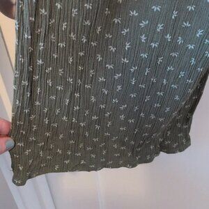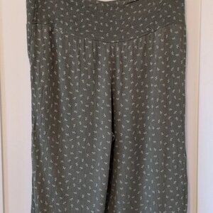 Three dots wide-leg pull on crepe pants. Olive green with white flowers. Comfy w