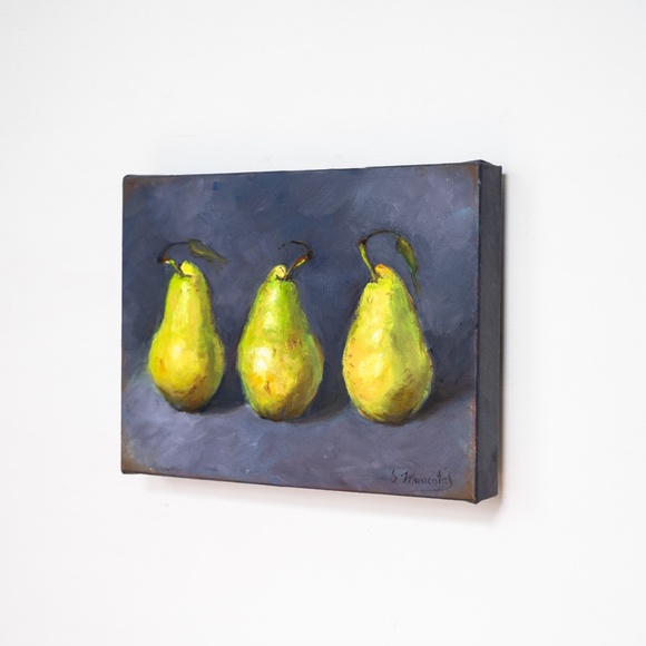 "Three green pears" oil painting on canvas 9" x 12"