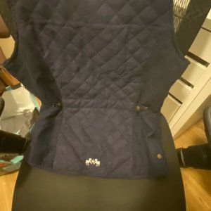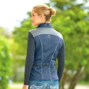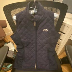 1-Equine Couture vest: Size L (slim fit) - micro-suede fabric, snaps in the back to adjust waist, vent with snaps for when sitting in saddle, 2-way zipper. Very stylish, classic.