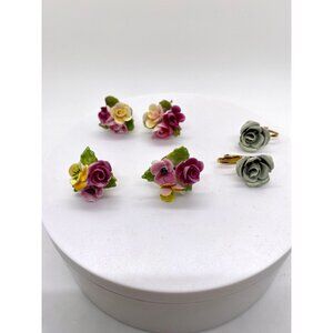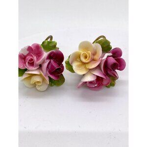 A trio of beautiful porcelain screw back/clip on earrings! All made in England. These delicate earrings are all hand painted flowers, hand carved and very popular in the 40's and 50's.