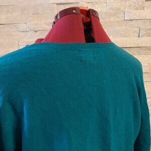 Three-quarter sleeve turquoise sweater with a gold heart on the front - Large