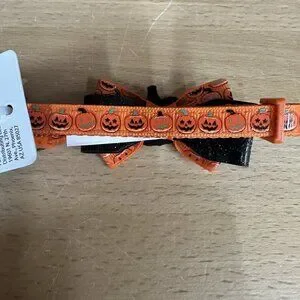 Thrills & Chills Halloween Pumpkin Cat Collar Glows In The Dark 8”-12”