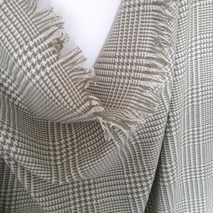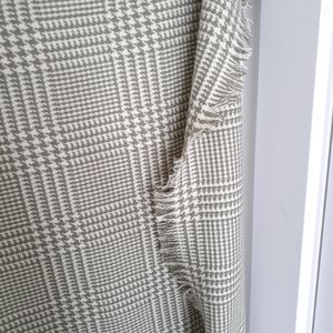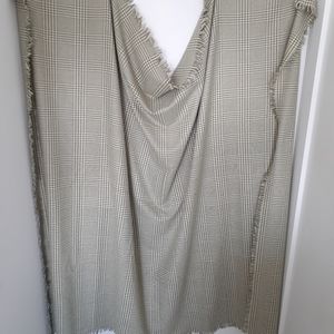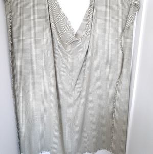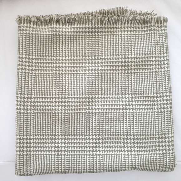 Green and white throw. Wool. Soft, warm, slightly itchy. (63×57"). Made from thrifted material. Hand Fringed.