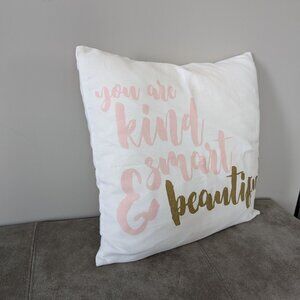 Throw cushion pillow cover, You are kind smart and beautiful 18x18in
