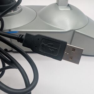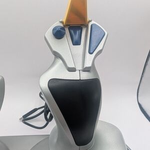 Vintage Silver and black joystick with ergonomic design. Features multiple buttons for enhanced control.
