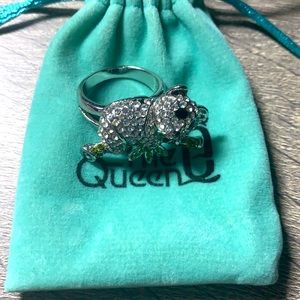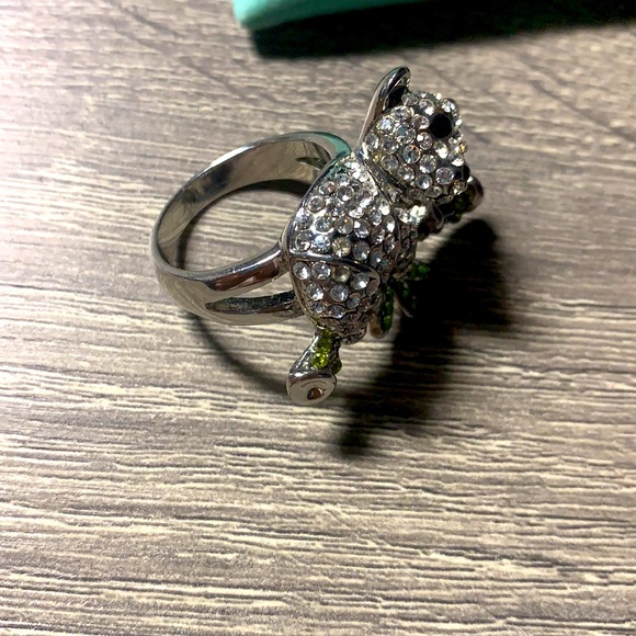Panda decorated with diamond, zirconia bamboo, stainless steel. Ring size 8