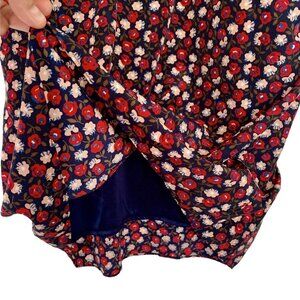 From Korean brand Thursday Island, this navy blue dress features a delicate floral print, flounce sleeves, side seam pockets, and a satin lining. The matching belt tie cinches the waist for a flattering silhouette.