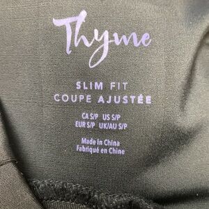 These are in excellent condition. They are made of cotton, polyester and spandex. These would work for the office.