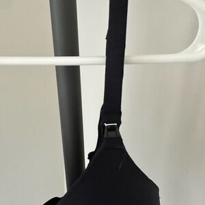 This black bra features a smooth, molded cup design with adjustable shoulder straps for a personalized fit. Its classic style and solid color make it a versatile choice for everyday wear, offering both comfort and support.