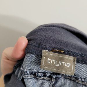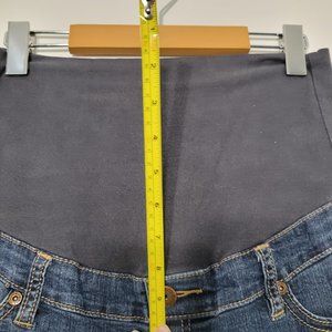 Thyme Maternity Cotton Blend Bell Bottom Denim Pregnancy Blue Jeans Mid Wash Sandblast Pockets Size Small