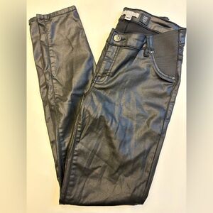 Thyme Maternity black faux vegan leather waxed leather pants curvy fit size 26