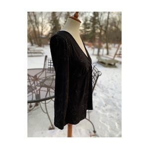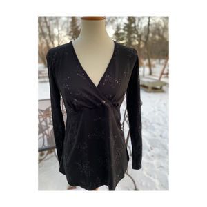 Thyme Maternity Black Metallic Top Blouse Sparkle Holiday Surplice Sz S
