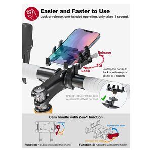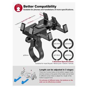 - Universal bicycle phone holder,suitable for 4.5-7 inch smartphones, suitable for phones with a width of 62-90mm and a thickness of <14mm. Comes with a rubber pad, which can be adjusted to correspond to different handlebar sizes, suitable for bicycles/mountain bikes/road bikes/downhill bikes/motorcycles/electric bikes with a handlebar diameter of 22.2-35mm.