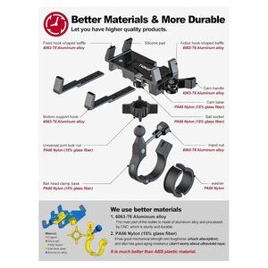 - The left and right telescopic arms fix the left and right sides of the smartphone, and the bottom telescopic arm can adjust the position of the mobile phone, which can avoid the side buttons and the camera of the mobile phone from being blocked. The 6 corners of the bike cell phone mount come with silicone pads, which will not scratch the phone screen.