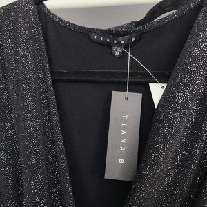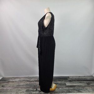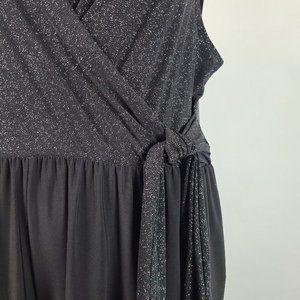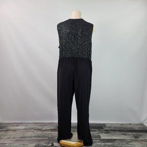 Tiana B Black Silver Metallic Cross Over Jumpsuit