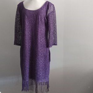 Tiana B NWT Purple fringe mesh lace overlay cocktail party shift midi dress sz12