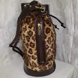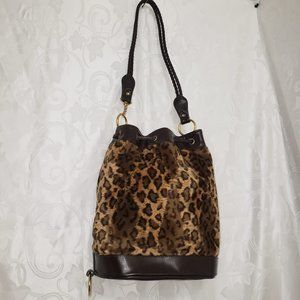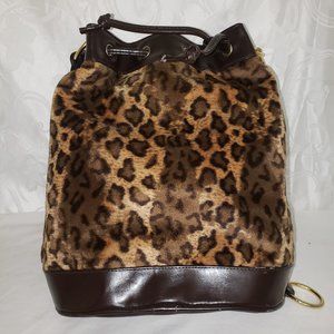 Tianni Women's Brown & Tan Faux Fur Leopard Print Shoulder Bag Purse Bucket Bag