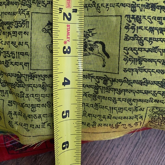 Each flag is 6” x 8” & it is overall length is very long. I didn’t unravel it to see how long tho.