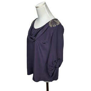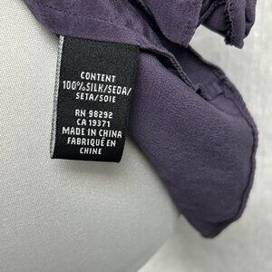 Tibi Blouse Women 4 100% Silk Roll Tab Sleeve Purple Embellished Beaded Feathers