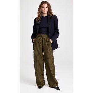 Tibi Italian Sporty Nylon Wide Leg Pull On Pants in "Wood", size XXS. Fits true to size for a slouchy fit.