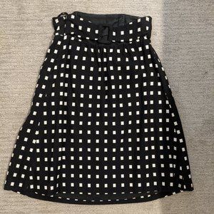Tibi New York strapless knee length to just above the knee (depending on height) summer cocktail dress size 2. 100% polyester, built in boning, side zipper. Black w/ white square checked pattern. Perfect dress for a summer wedding or to dress up on destination travel. Previously worn, but in great condition. This dress is dry clean only.