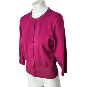 Tibi Womens Silk Angora Jewelled Button Front Cardigan Size Medium 3/4 Sleeve