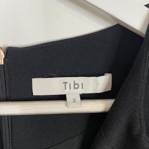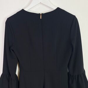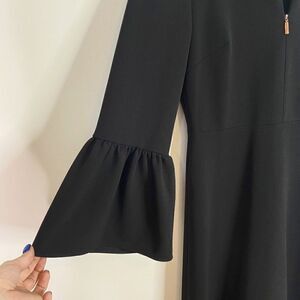 Tibi Black Zip Neckline Midi Dress with Bell Sleeves