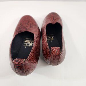 Tic-Tac-Toes Red Tooled Leather Shoe Women's US Size 8.5 Pump Low Heel