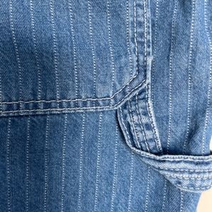 Thinner material ticking striped carpenter denim skirt. Really nice for summer days. And the unique details make this skirt so cute!