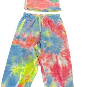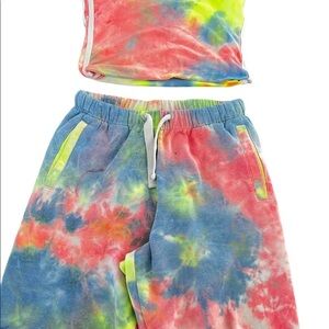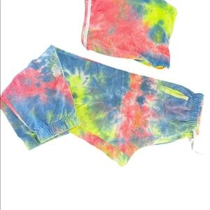 Tie Dye Rainbow Crop Top and Shorts Set - Festival Outfit - Size S
