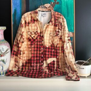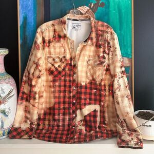 Tie Dye Plaid Flannel Button-Up Blouse XXL Lined Cozy Soft XXL