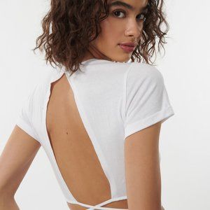 Add a lil' sumthin' sumthin' to your basics wardrobe with this open-back tie-waist tee. Super soft and fitted, it's defs an add-to-cart.