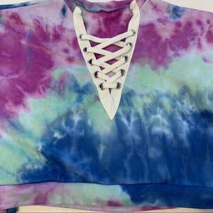 Tie-dye crisscross chest drawstring sweater size S. Super cute. On trend for this spring and summer