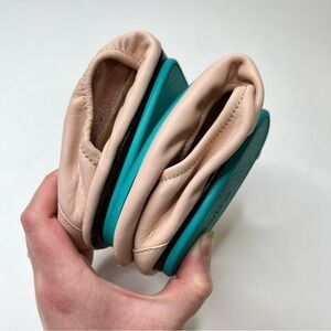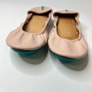 Soft pink leather flats. Signature Tieks turquoise sole. Comfortable and stylish.