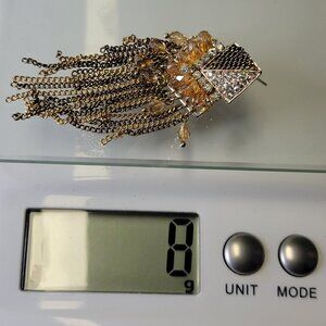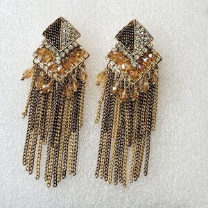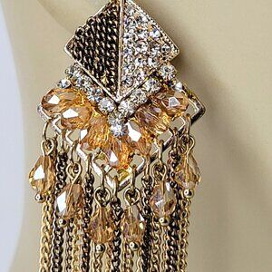 Amber Hued Crystal Rhinestone Tassel Earrings