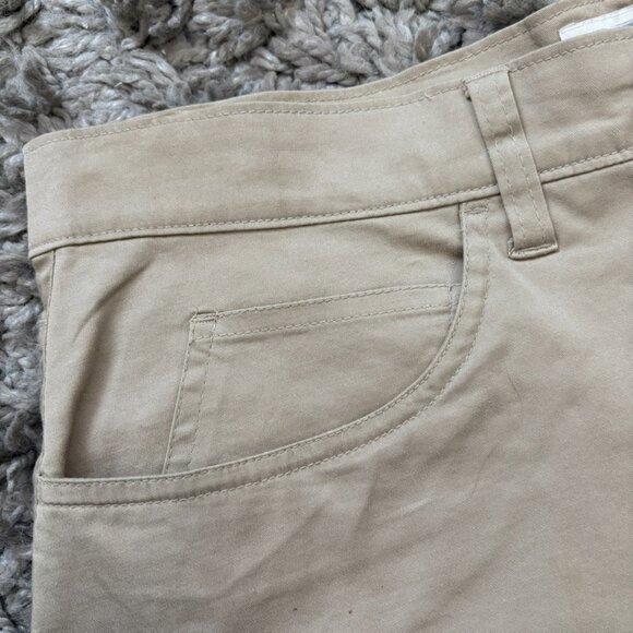 It has a fly-zipper front that closes at the waistband with a button. Belt loops for your favourite belt.