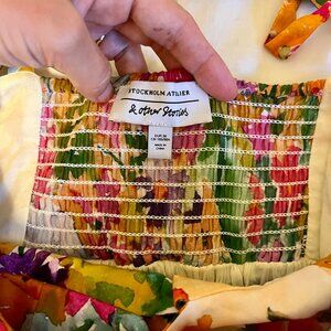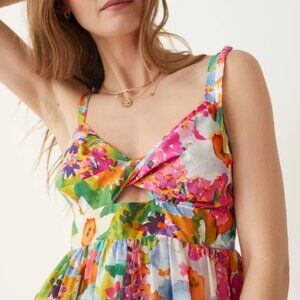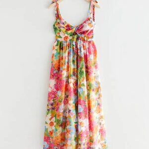 Nothing makes you feel more like a summer wedding guest than this dress. It's so light and airy, perfect for a warm evening. But the warm colours make it a great transition piece for autumn. The tie straps allow for the top part to fit as snug as you want. The twist front with key hole is very flattering. Elastic back and lining in the skirt. One of my favourite dresses, only worn twice.