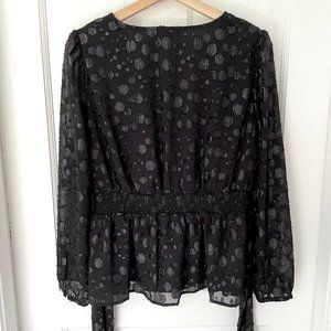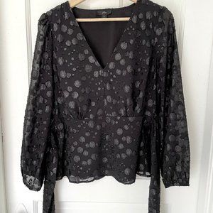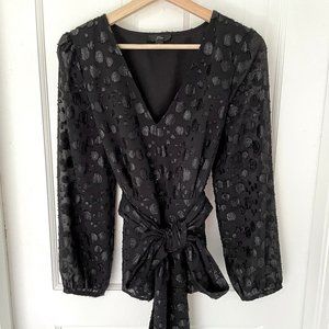 Holiday part? Date night? Drinks with the girls? Check off all the boxes with this chic chiffon blouse designed in a tonal pattern and cut with an always-flattering deep V-neck and a bow that can either be tied at the front or back—you decide!