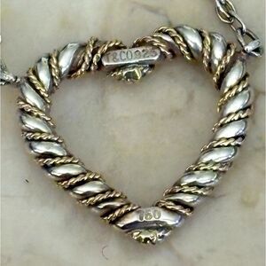Tiffany & Co 18K Gold & 925 Sterling Silver Twisted Rope Open Heart Necklace 20”