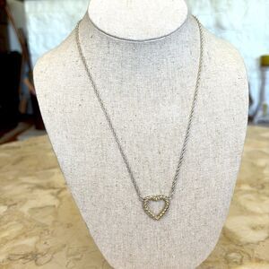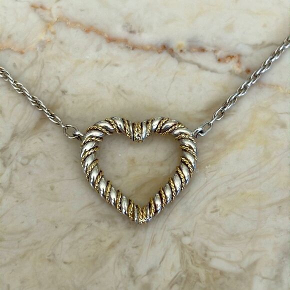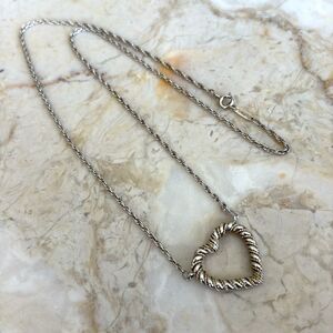 Tiffany & Co 18K Gold & 925 Sterling Silver Twisted Rope Open Heart Necklace 20”
