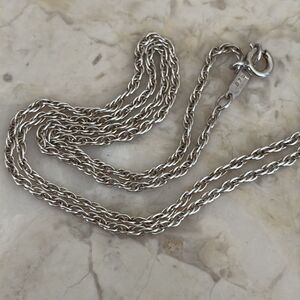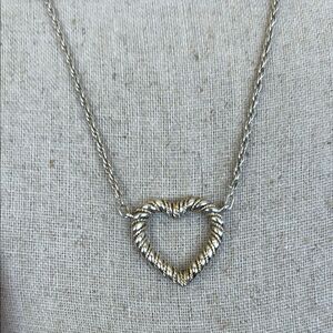 Lovely rope chain, that is the perfect 20” length, stunning twisted rope heart with alternating sterling silver and 18K yellow gold rope wrapped around a solid Sterling silver heart that is approximately 1”.