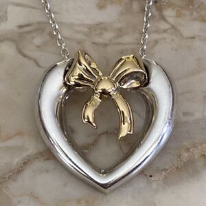 Tiffany & Co. 18K Gold & Sterling Silver Heart & Bow Ribbon Necklace
