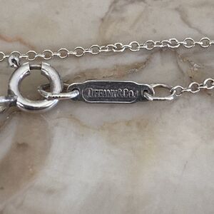 The pendant is 3/4" by 3/4" marked Tiffany & Co. 925 750.